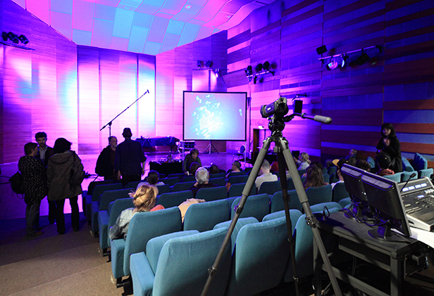 ]interstice[ est un laboratoire d’agencement visuel et sonore des œuvres, à partir de mécaniques élaborées ou de formes triviales, dévoilées ou non. L’ingénierie ne porte de sens que pour elle-même, toujours elle disparaît dans le flux des réflexions et des sensations, laissant le public en suspension entre deux états de réalité. Elle compose et recompose une autre réalité de notre perception de la création contemporaine et de ses relations au temps et à l’espace de la ville.