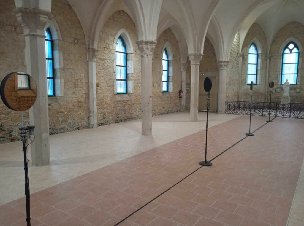 Julien Poidevin imagine son installation L’écho des pierres dans l’optique de dévoiler l’acoustique d’un espace. Il met au point un système technologique qui se compose de 3 partitions sonores qui apportent chacune des bruits et rythmes différents qui se complètent. Selon son activité et son positionnement dans l’espace, le visiteur entend une composition singulière, pour une expérience auditive sans cesse renouvelée.