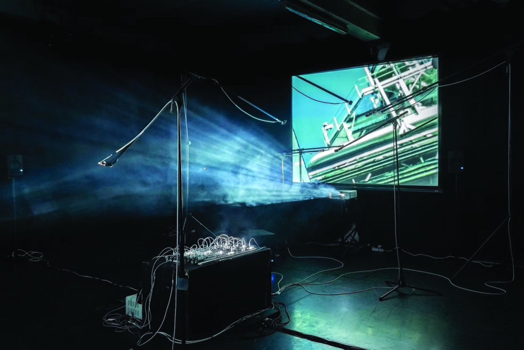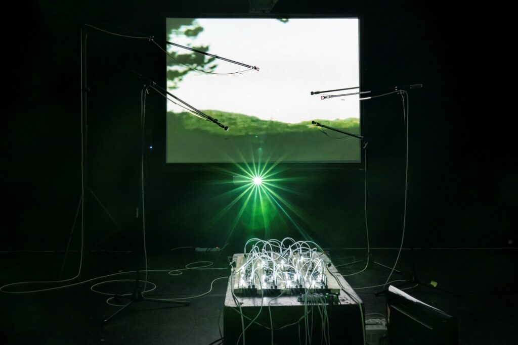 In his projects, sound is used as a material to explore matter, space and electrical phenomena in the broadest sense, through vibrations that are both sonic and mechanical. As essential tools in his research, the synthesizers he has been building since 2019 occupy different positions within his installations, manifesting in a variety of ways all the electrical choreographies that form the fabric of his projects.
